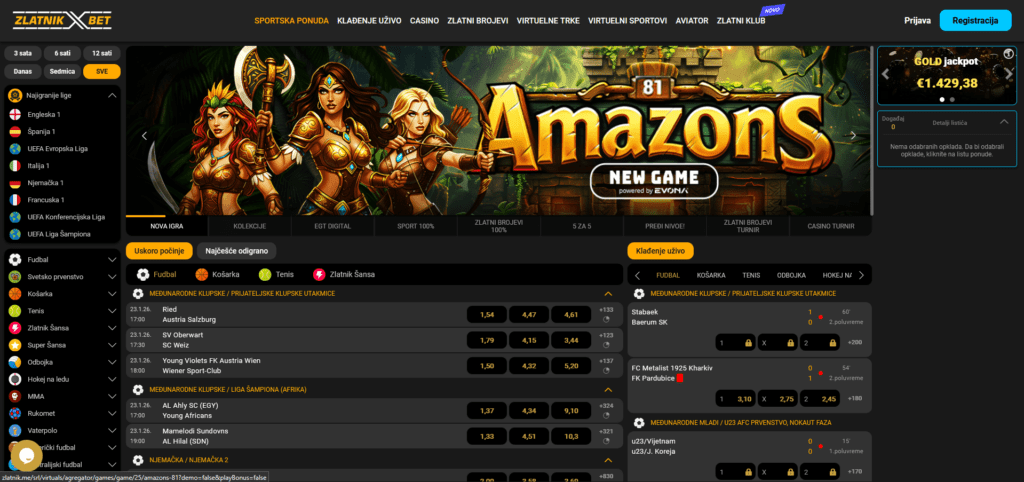 Zlatnik je kladionica koja je brzo osvojila domaće tipstere jer nudi jednostavan interfejs i brz proces klađenja. Fokus je na lakoći upotrebe, pa se na sajtu i u aplikaciji brzo snalaziš, čak i ako ne voliš da gubiš vreme na podešavanja. Fudbalska ponuda pokriva najigranije lige, domaće prvenstvo, regionalna takmičenja i popularne evropske lige, a marketi su okrenuti realnim potrebama igrača koji prave dnevne tikete. Zlatnik je tip kladionice gde uđeš, nađeš meč i završiš tiket bez komplikacija.